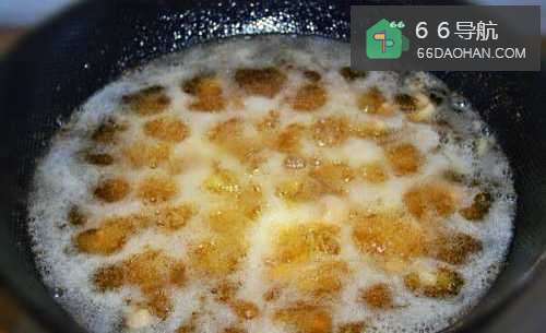 3坐锅起油,油温六成热下腌制好的鸡腿肉,油温升至八成热,将鸡腿肉炸至表面金黄,捞出沥油待用