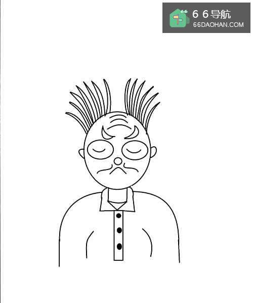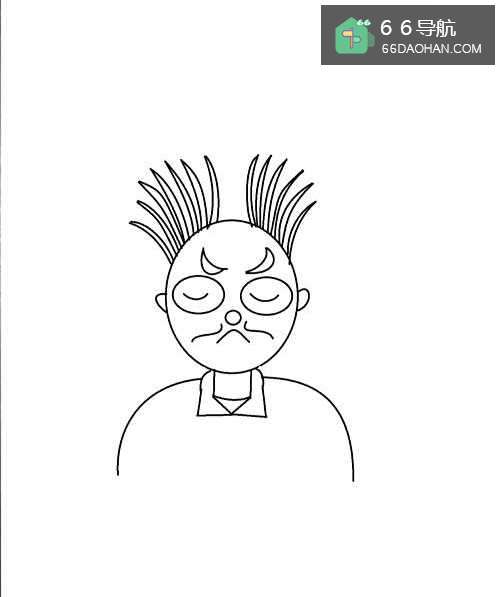4接下来继续画出爷爷生气后竖起来的头发,画好一边把另一边的头发也画好。