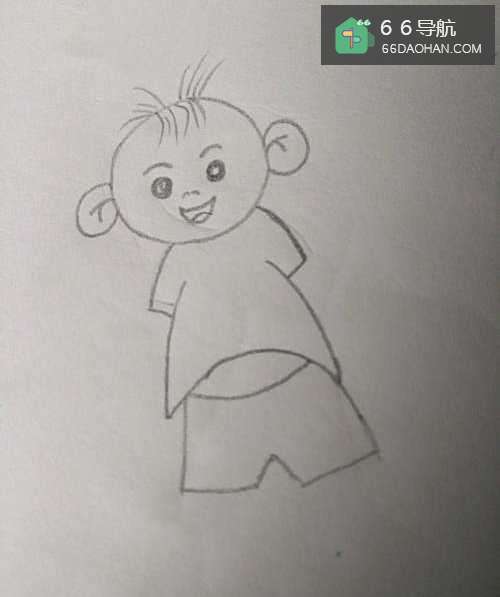 5如图,画出大头儿子的腿脚,腿的长度和短裤的长度差不多就可以。