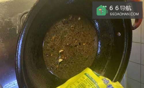 2锅内放油,放入蒜末、花椒、豆瓣酱、味精