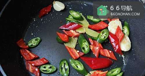 7锅内放入姜蒜辣椒炒香;