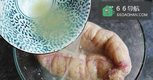 2把鱼籽清洗干净,撕去表面的一些细小的筋膜,然后倒入姜葱水浸泡10分钟;