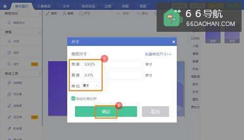 3在尺寸对话框,选择单位【英寸】,输入【宽、高度】,点击【确定】即可。
