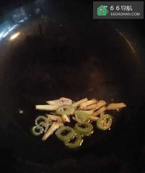 3先在锅里放入一些食用油,将葱和姜丝放进锅中炝香。