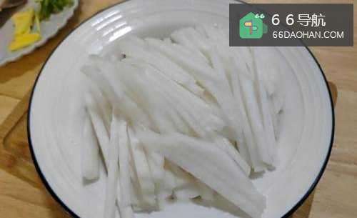 4炖汤的时间我们将萝卜处理一下,削皮洗净切细丝
