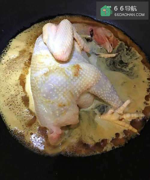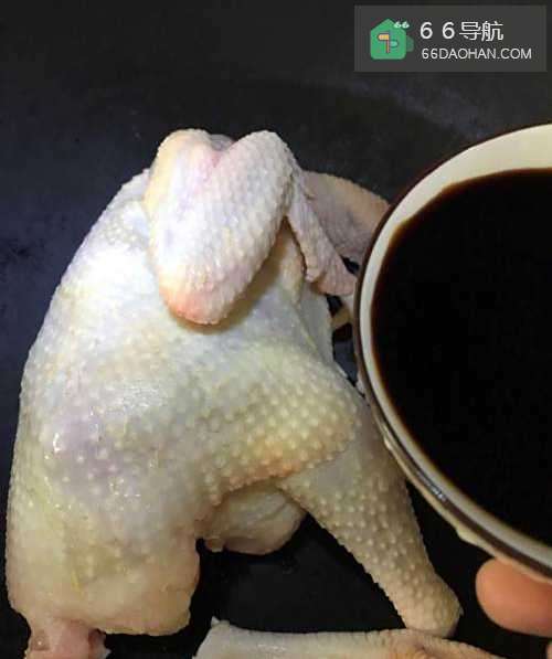2把鸡放进锅里,把一碗酱油到进去,加入三碗水和一碗的白酒