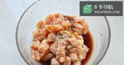 鸡胸肉洗净后剔去筋膜,切成适量大小的丁块