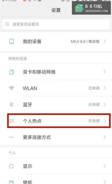 1、设置手机的个人热点