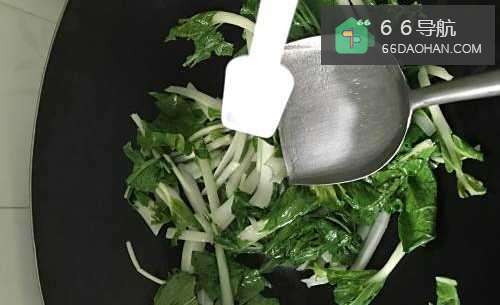 5焖煮一会,不用盖锅盖,不然菜叶会变黄哦,这时加入几滴陈醋,翻炒均匀即可。