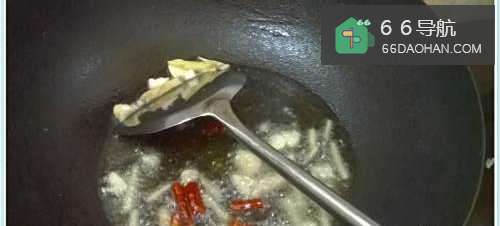 5加入切好的生姜,大蒜,干红辣椒煸出香味.从水中捞出切好的淮山片.
