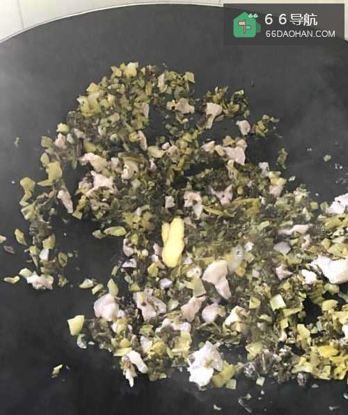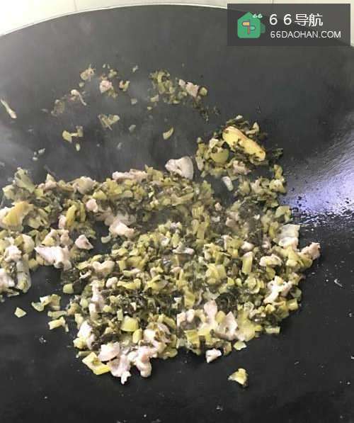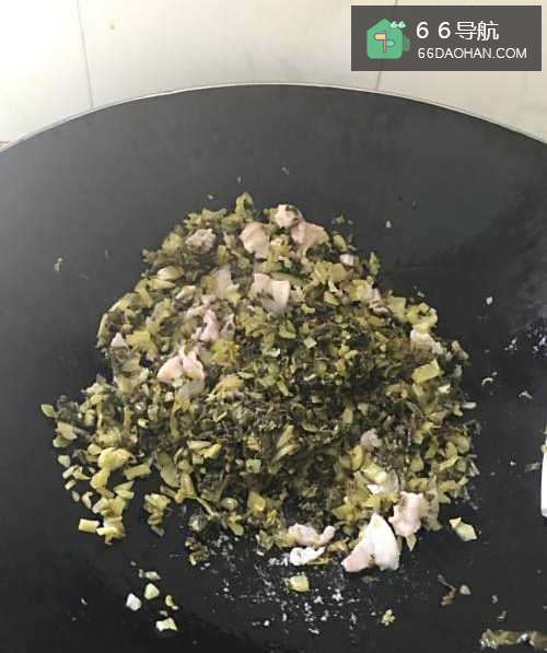 3把酸菜捞起,炒锅炒热,把酸菜倒入,翻炒至水分干,就是翻炒时看不见水份出来就可以了。