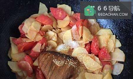 可以盖上锅盖,焖煮一会,以便于西红柿变软出汁。