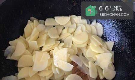 然后把泡水的土豆片捞出来,放入锅中。