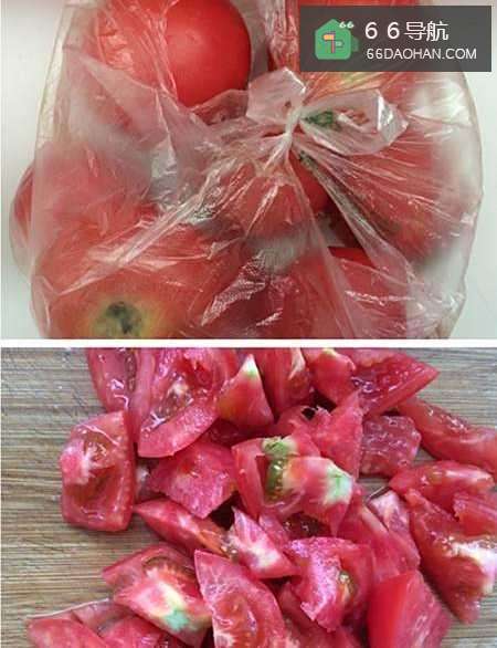 3番茄,也就是西红柿,洗净后,切成不规则的菱形,盛盘备用。