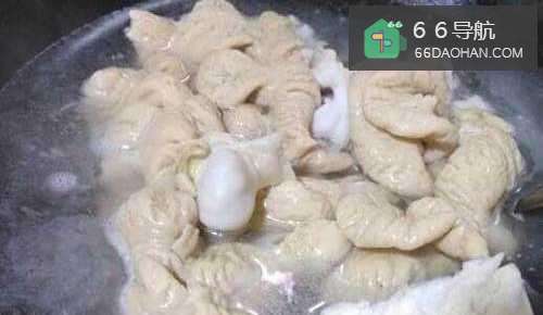 4把大肠切断放入水中煮透大概煮半小时,煮好后捞出备用。