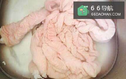 2接着用水灌一次大肠,清洗一下把肠子内部翻到外部,可以用筷子翻。