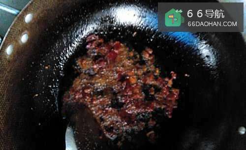 2在锅里把油烧会儿,冒点小烟是正常的,然后放入豆瓣酱(油烧会儿可以把豆瓣酱的味道发挥的淋漓尽致~)。