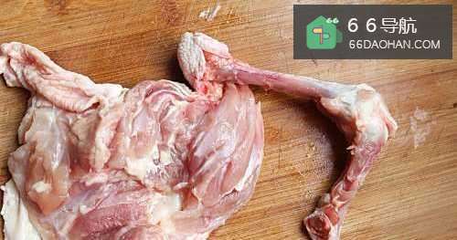2用剪刀贴着鸡腿的骨头,把大鸡腿骨肉分离;
