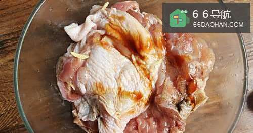 3鸡肉冲洗干净后放入胡椒粉抓匀,放入蚝油和盐,姜丝抓匀腌制30分钟;