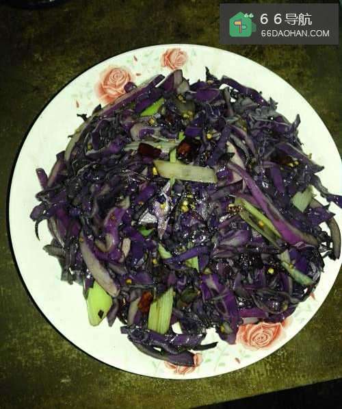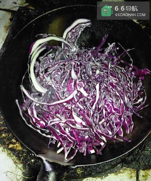 3锅放油,先将紫甘蓝略炒,变软倒出!