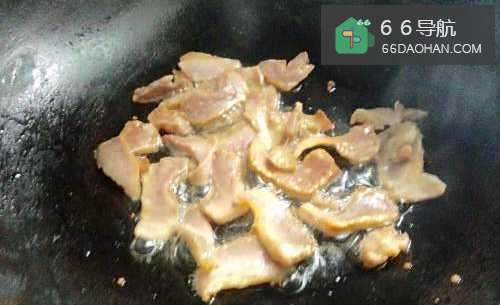 3锅烧热之后加入少许油,油温至8成热的时候放入腊肉。