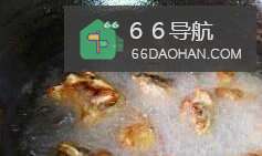 3在锅中倒入足够的油,多倒一些,实际消耗不多,最好能没过排骨,加热炸锅中的油至7成热,放入猪肋排,煎炸至金棕色,我喜欢吃老一点的所以炸的比较透,捞出沥干备用