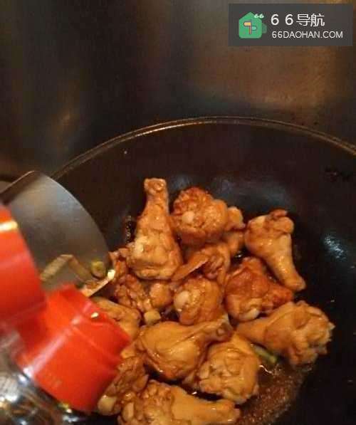 7再往锅中放入适量的酱油,增加翅根的色泽。