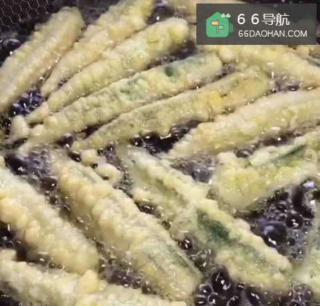 4锅内放油,油热后放入沾上面糊的秋葵,小火炸至金黄酥脆;