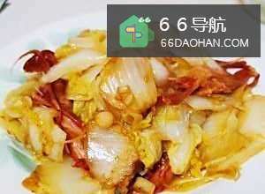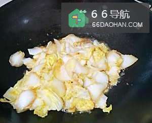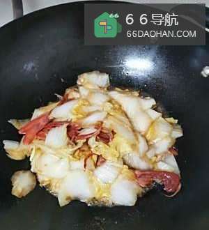 4炒软至大白菜出水后,调中火并盖锅盖略焖一小会,大约12分钟