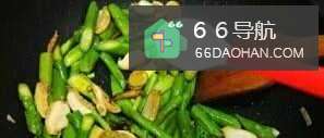 10放入芦笋翻炒,加一两勺的鲍鱼汁调料(没有可不加),少量生抽,1茶匙白糖,翻炒均匀