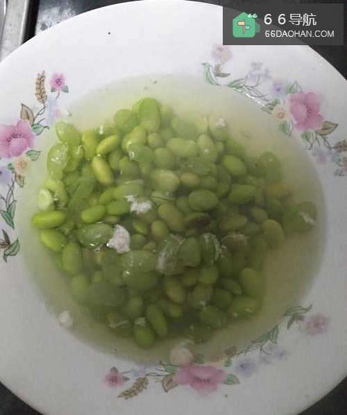 3将煮熟的毛豆捞起,装盘备用