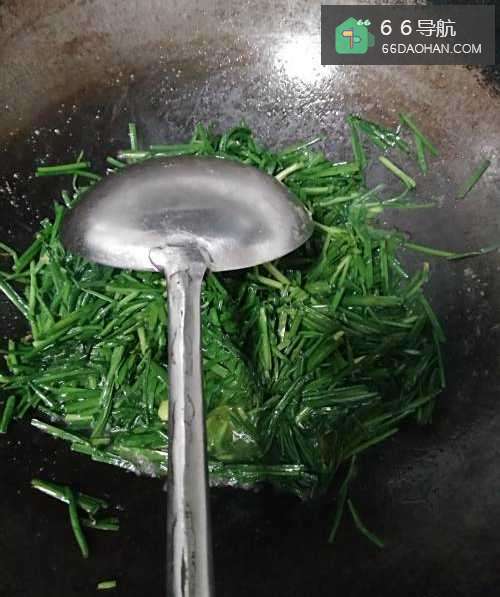 4锅中倒油,放入切好的韭菜,加入适量盐进行翻炒