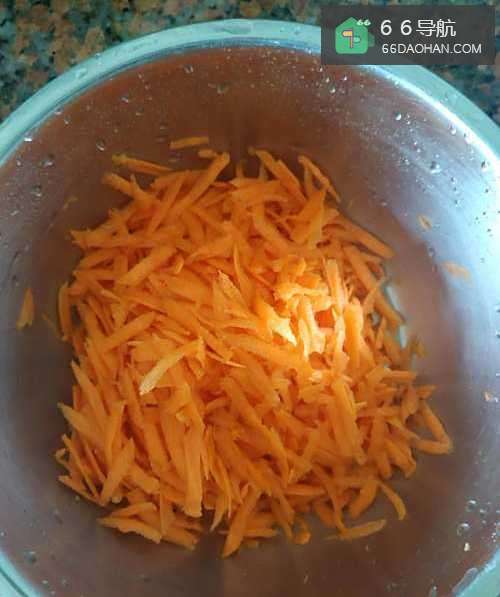将胡萝卜洗净刨丝备用。