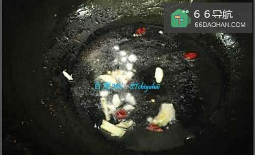 4打开电磁炉,往锅内加入适量的油,放入辅料爆香一阵,先放入青椒块炒一阵,注意翻炒,不要将青椒炒焦了。