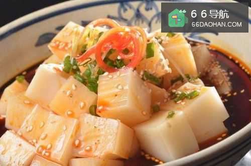 5最后把搅团切好,就成型了,如果把晾好的搅团放到冰箱冷藏再拿出来吃,味道更好啊。