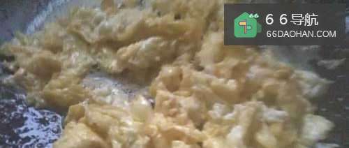 7把鸡蛋放入油中炒成块状。