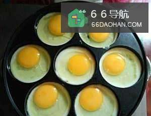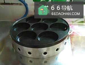 4然后把模具放在煤气灶上加热,在模具里面刷一层油;等油热了之后,在每个模具里打一个鸡蛋进去。