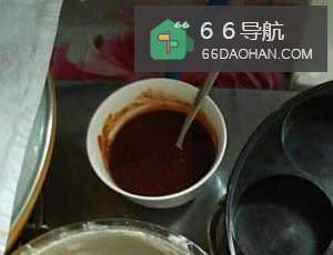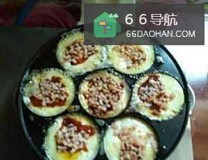 5然后把鸡蛋黄在模具中打散,刷上一层配好的酱,然后在铺好一层肉馅(陷也是根据自己的口味自行料理的)。