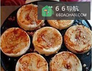 7拿出之后,撒上芝麻,如果感觉味道还不够,可以在鸡蛋堡的两面再次涂上酱料,切开来就可以吃了。