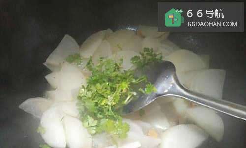 8盖上盖子,煮几分钟,具体时间根据白萝卜的厚薄,煮熟就可以。