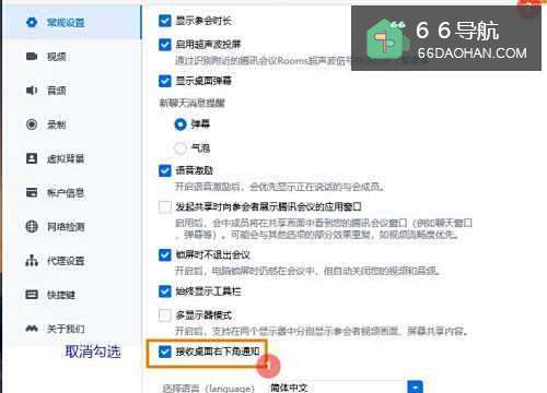 3在常规设置页面,取消勾选【接收桌面右下角通知】,关闭窗口即可。