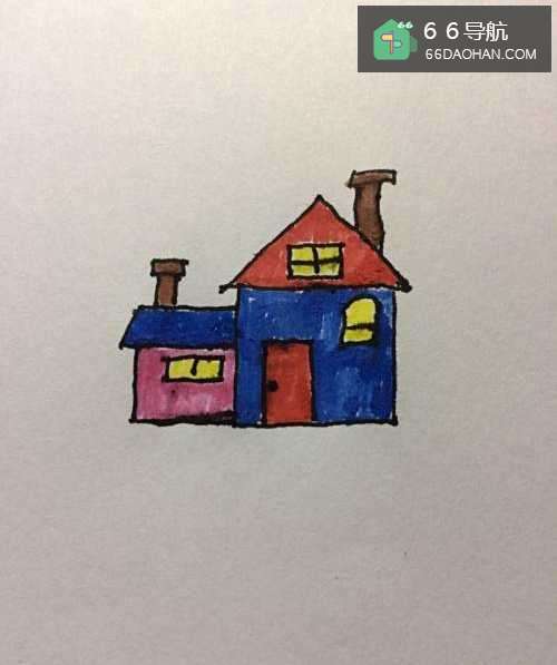 房子就是由三角形或是梯形,长方形还有正方形组合而成的。
