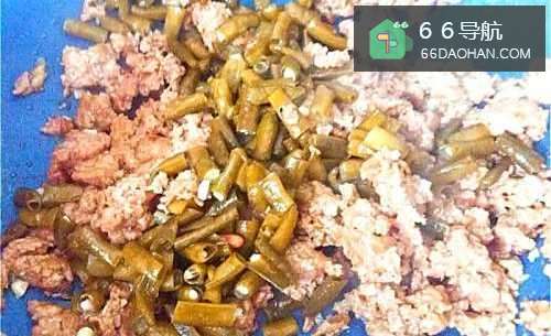 酸豆角略微浸水,洗净,然后切碎。