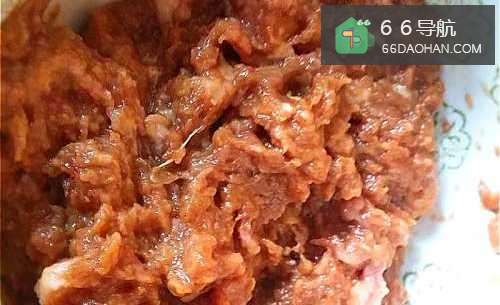 2猪肉洗净,用搅拌机搅碎,加入腌料,腌约30分钟。