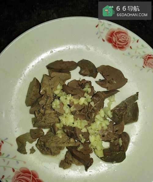 6将大蒜,去皮,用蒜缸捣碎,如果没有蒜缸,就切碎,先用刀拍碎!这样蒜味容易溢出!撒在肝上就好了!