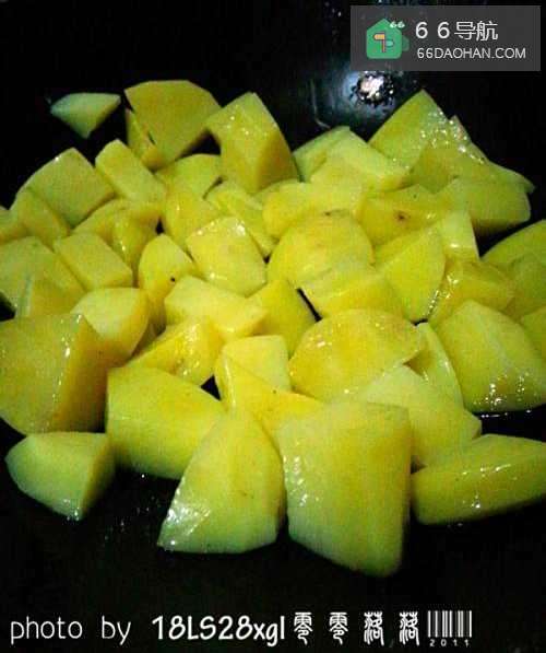 7土豆里调入第3步调好的料汁,翻炒均匀;