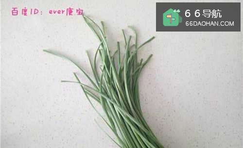 2将韭菜花的花朵部分摘除,洗净,切成如指节间般长短的小段;