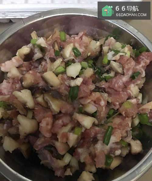 4接着把葱香菇肉沫放在一起拌,并加入调料盐油味精酱油等。