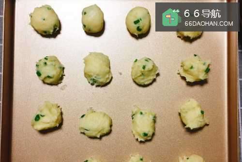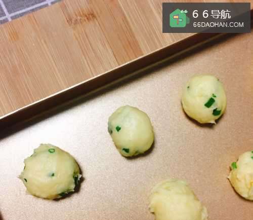 6带上一次性手套,将面团分成类似糯米糍大小并搓圆,放到烤盘上。