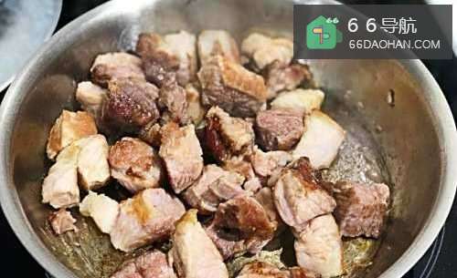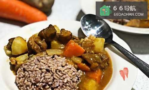 把猪胛心肉煎得香香的再与蔬菜一起下锅炖煮咖喱,简单的作法,却能吃的又香又饱。